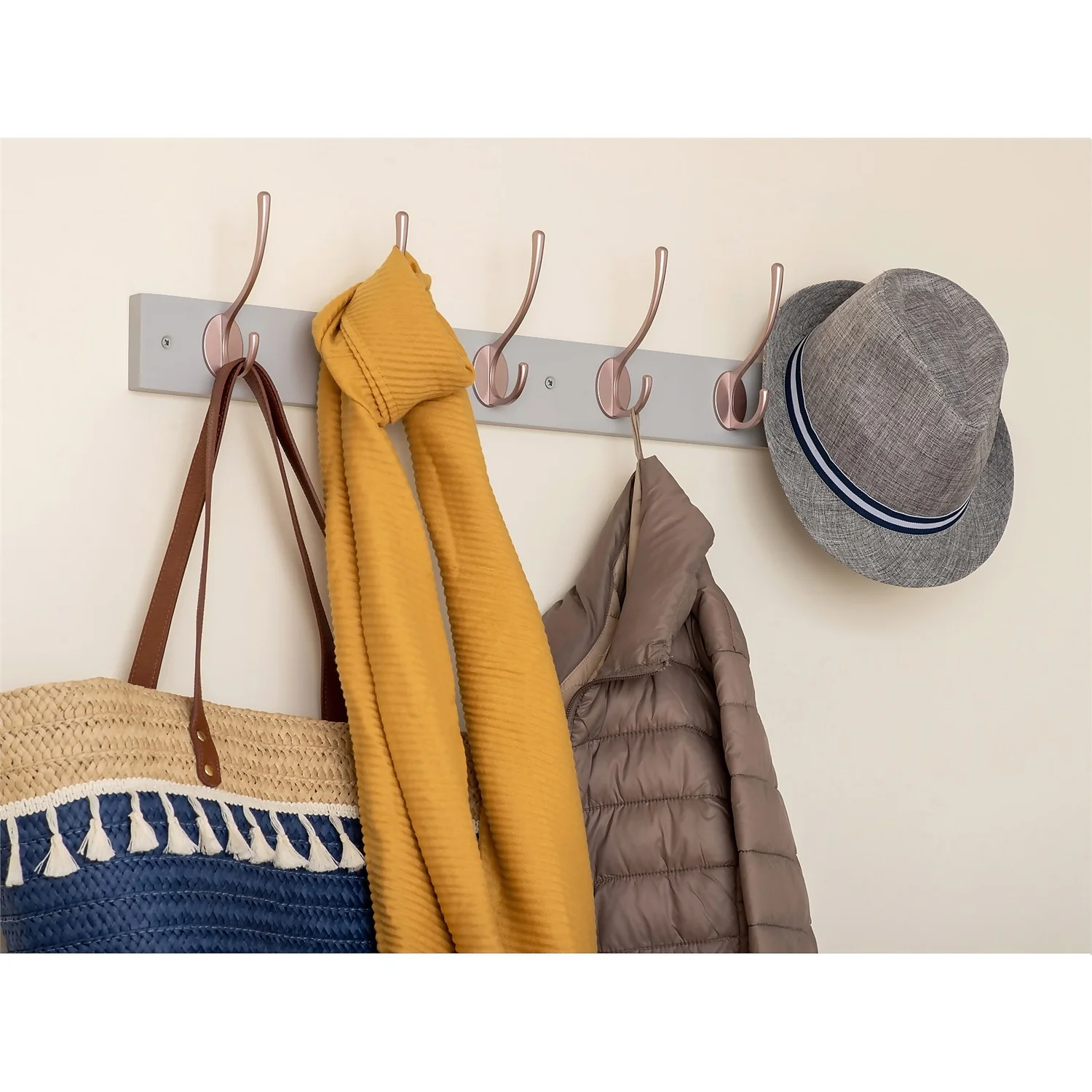 - 6 stylish double hooks provide ample hanging space for families.