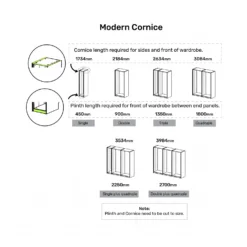 Take your wardrobes to the next level by creating that fitted bedroom look with our House Beautiful coordinating modern cornice. This provides the finishing touch to tie in with your chosen door finish and is perfect when partnered with the coordinating plinth and end panels (available separately) to complete the look.