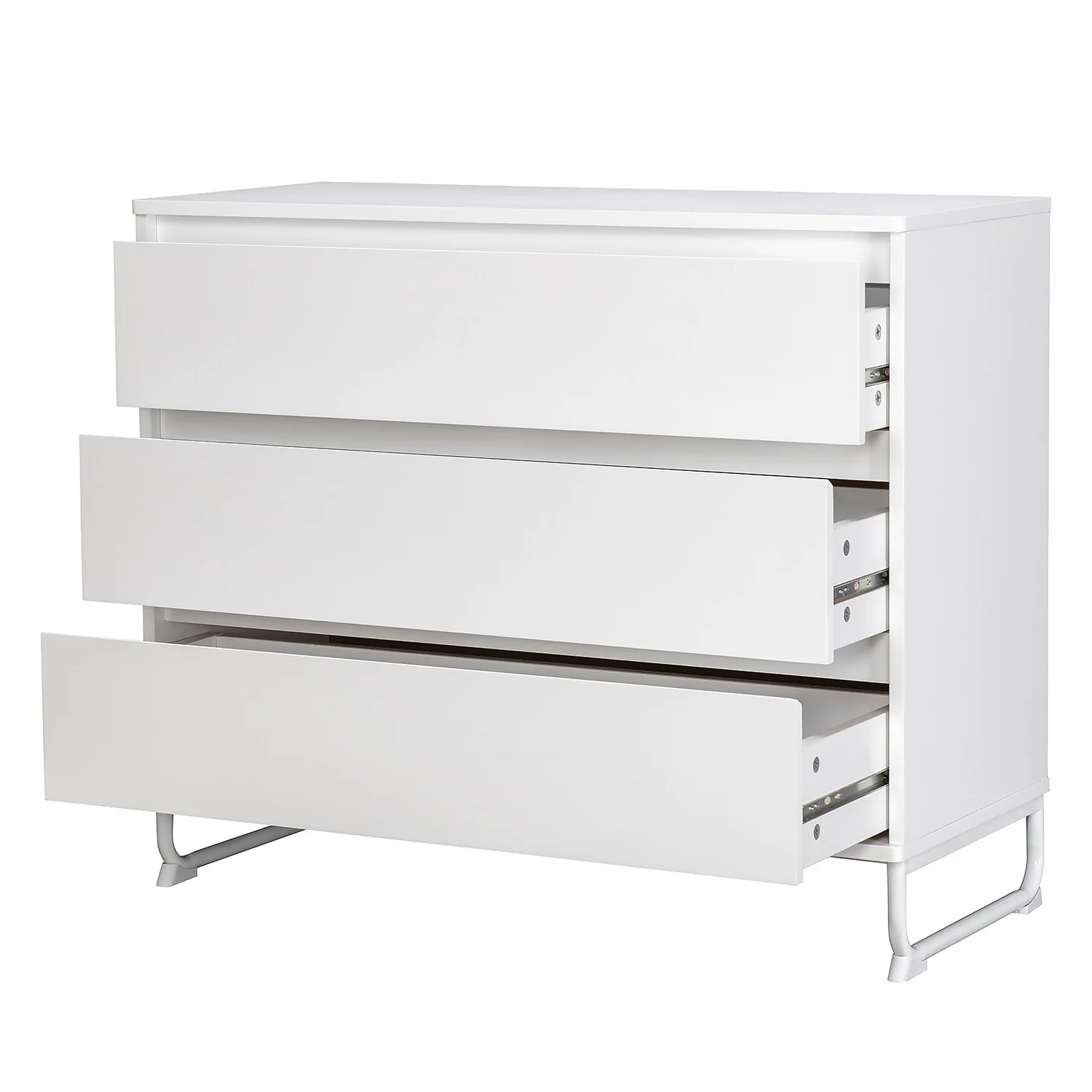 - Metal drawer runners make opening and closing smooth