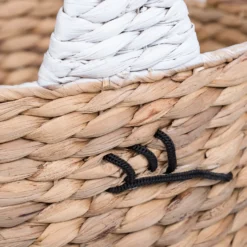 - Woven from natural water hyacinth around a metal frame for sturdiness.