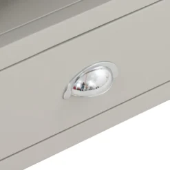 We’ve worked hard to make Norbury our most family-friendly range yet. We’ve softened all the edges, even the legs, so there are no sharp corners here. This compact collection has a small footprint, but its clever design doesn’t compromise on storage space. Meet our grey Norbury corner TV stand. It features charming timeless details such as the classic oak top, cup handles but with a modern painted grey finish. The 2 drawers will take care of any media clutter, whilst the open shelf can hold your home entertainment box. The design fits neatly in the corner of your lounge to make the most of your precious space.
